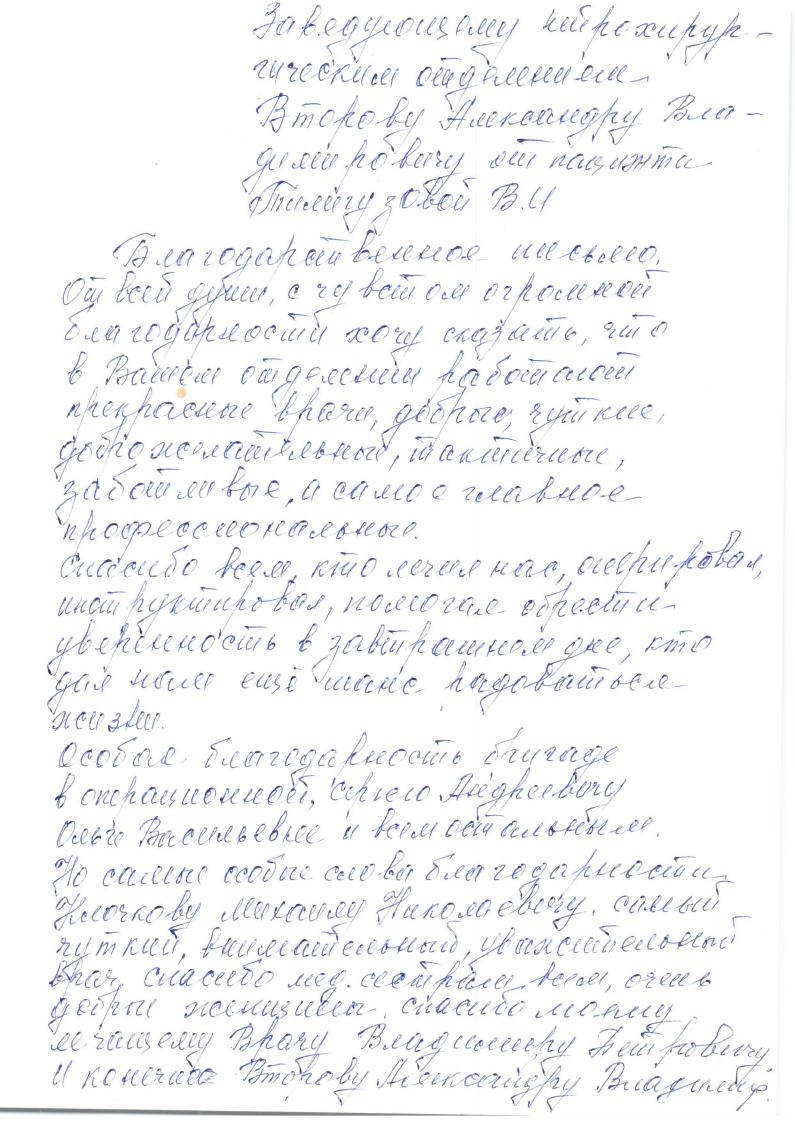 Хочу также поблагодарить анестезиолога О.В.Федорову и всех,кого я не знаю,но кто обеспечивал ход операции.
