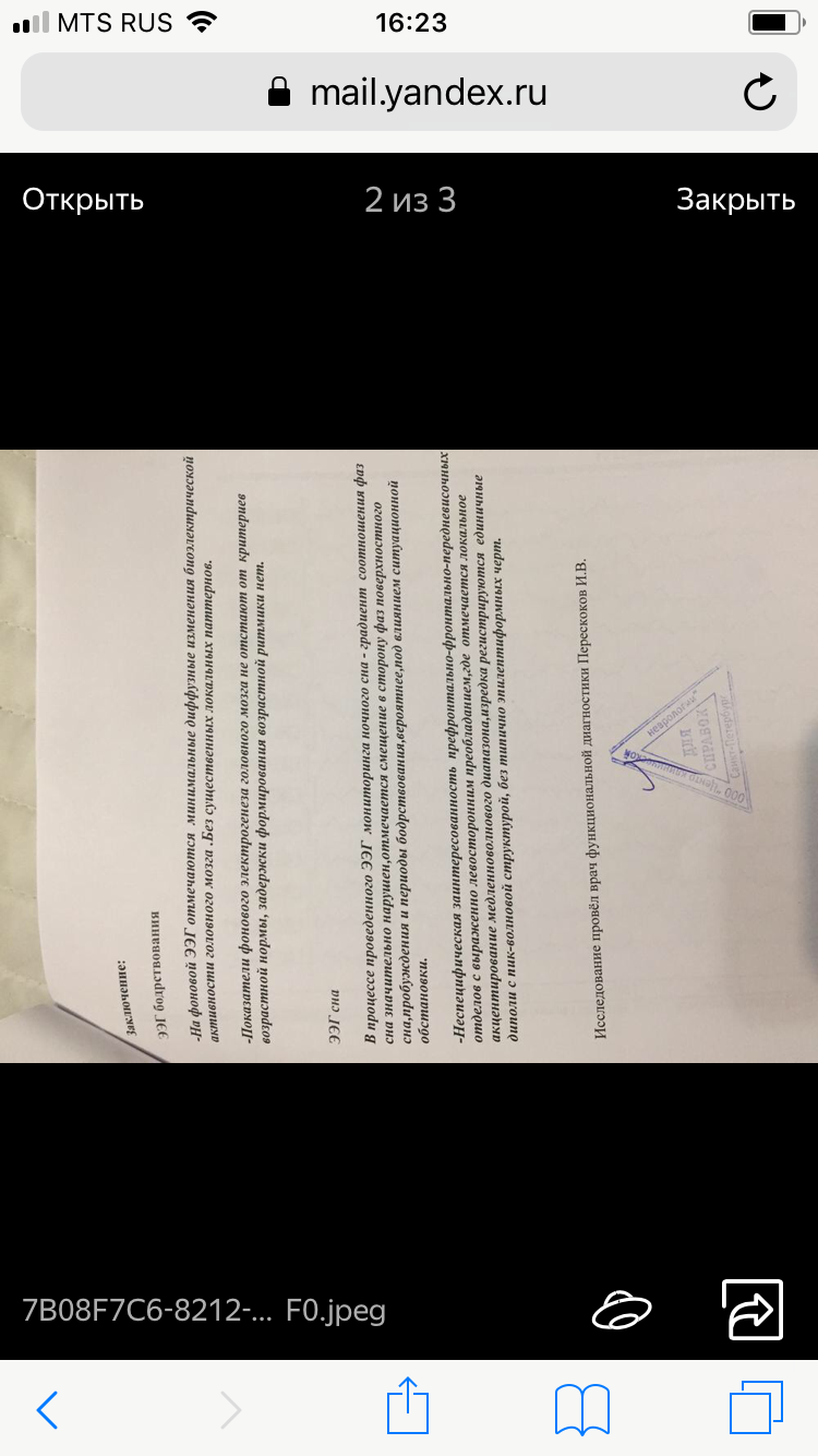 После 7 августа, по выходе из отпуска, звоните мне по т. 670-02-30, всё решим. ЭЭГ, возможно, придётся переделать - поликлинические записи, к сожалению, нас не устраивают по качеству.