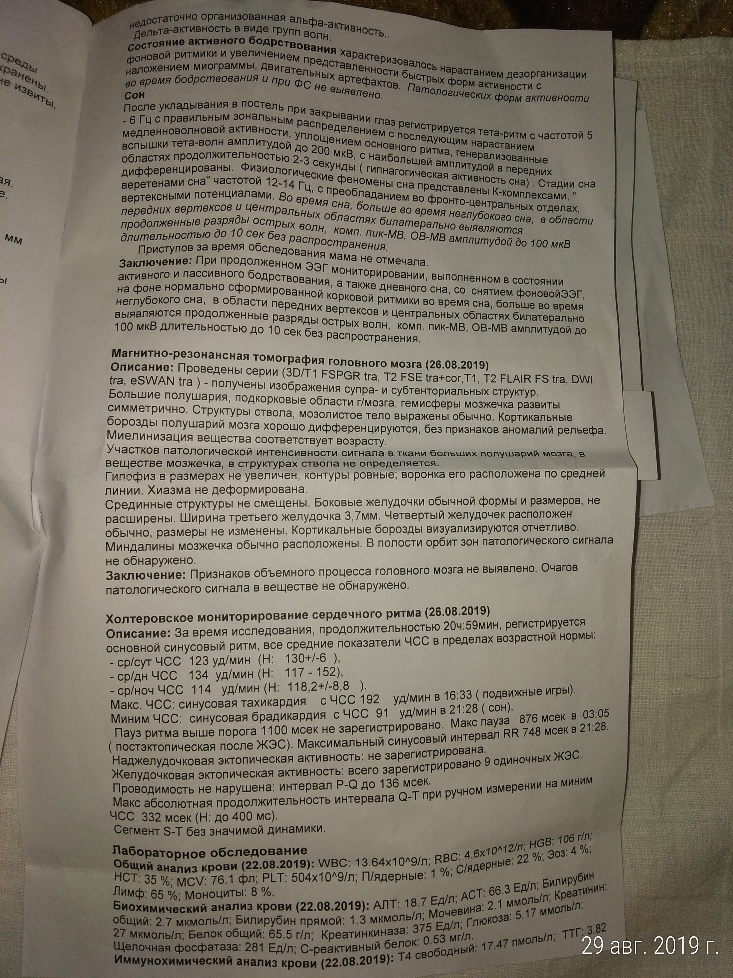 Добрый день! ребенок с 7 месяцев кричит по ночам во время сна, может открывать при этом глаза, переворачиваться, вставать на четвереньки, но не просыпаться и его безполезно будить - не проснется. Это обычно происходит в одно и тоже время, через час после засыпания и за час до пробуждения. Во всех случаях помогал нурофен и/или стомотологический гель на десна и он продолжал спокойно спать. мы обследовались эхо, узи мозга, экг, мрт, все в норме. ЭЭГ показала эпиволны, но внятный диагноз врачи назвать не могут. Прошу Вашего совета.Заключение ээг: при продолженном ээг мониторивании, выполненном в состоянии активного и пассивного бодрствования, а так же дневного сга, со снятием фоновой ээг, на фоне нормально сформированной корковой ритмики, во время сна, больше во время неглубокого сна, в области передних вертексов центральных областях билатерально выявляются продолженные разряды острых волн, комп. пик-МВ, ОВ-МВ амплитудой до 100 мка длительностью до 10 сек. без распространения. Заранее благодарю!