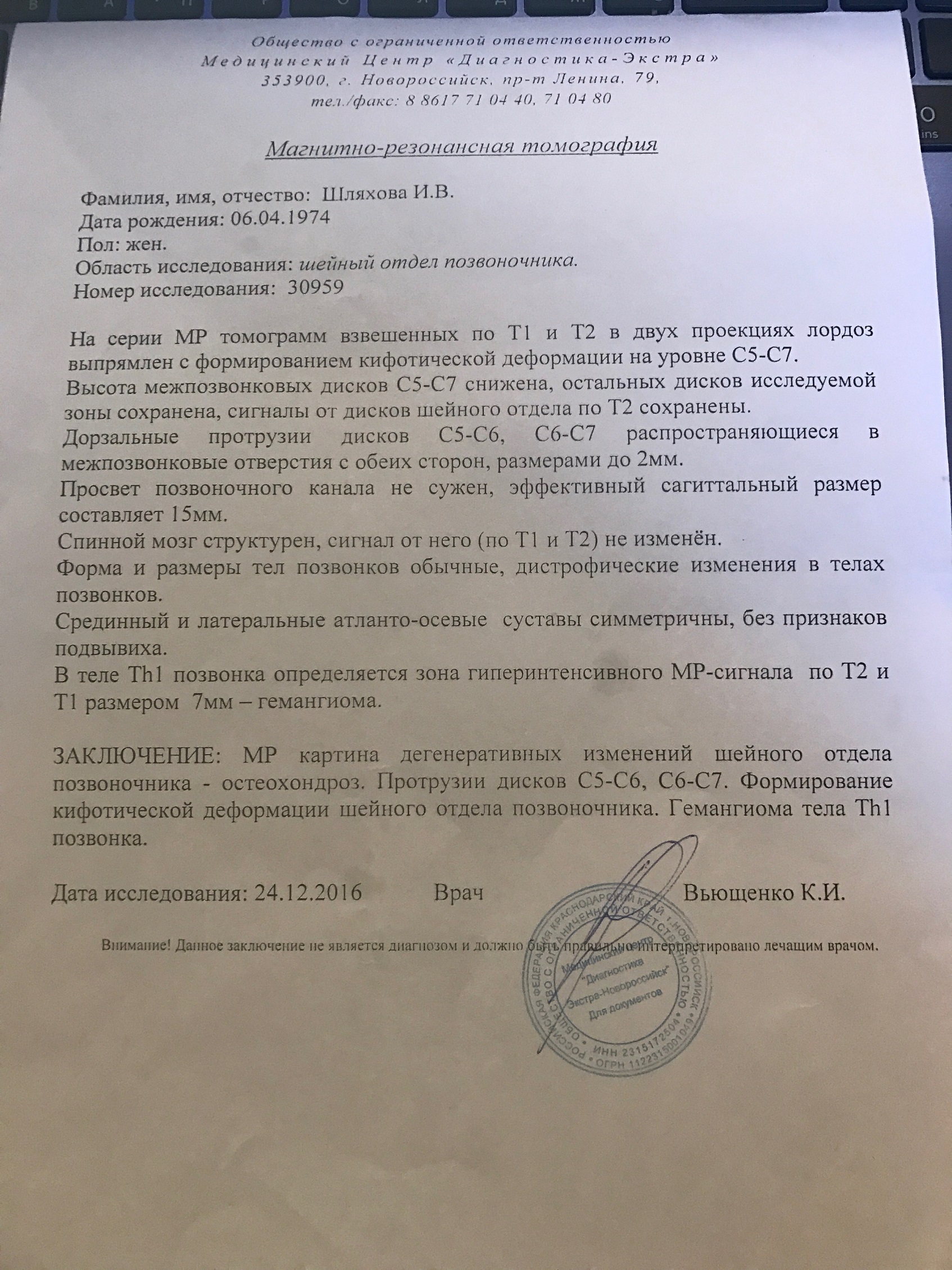 24.12.16 Сделала обследование МРТ шейного отдела и головы.