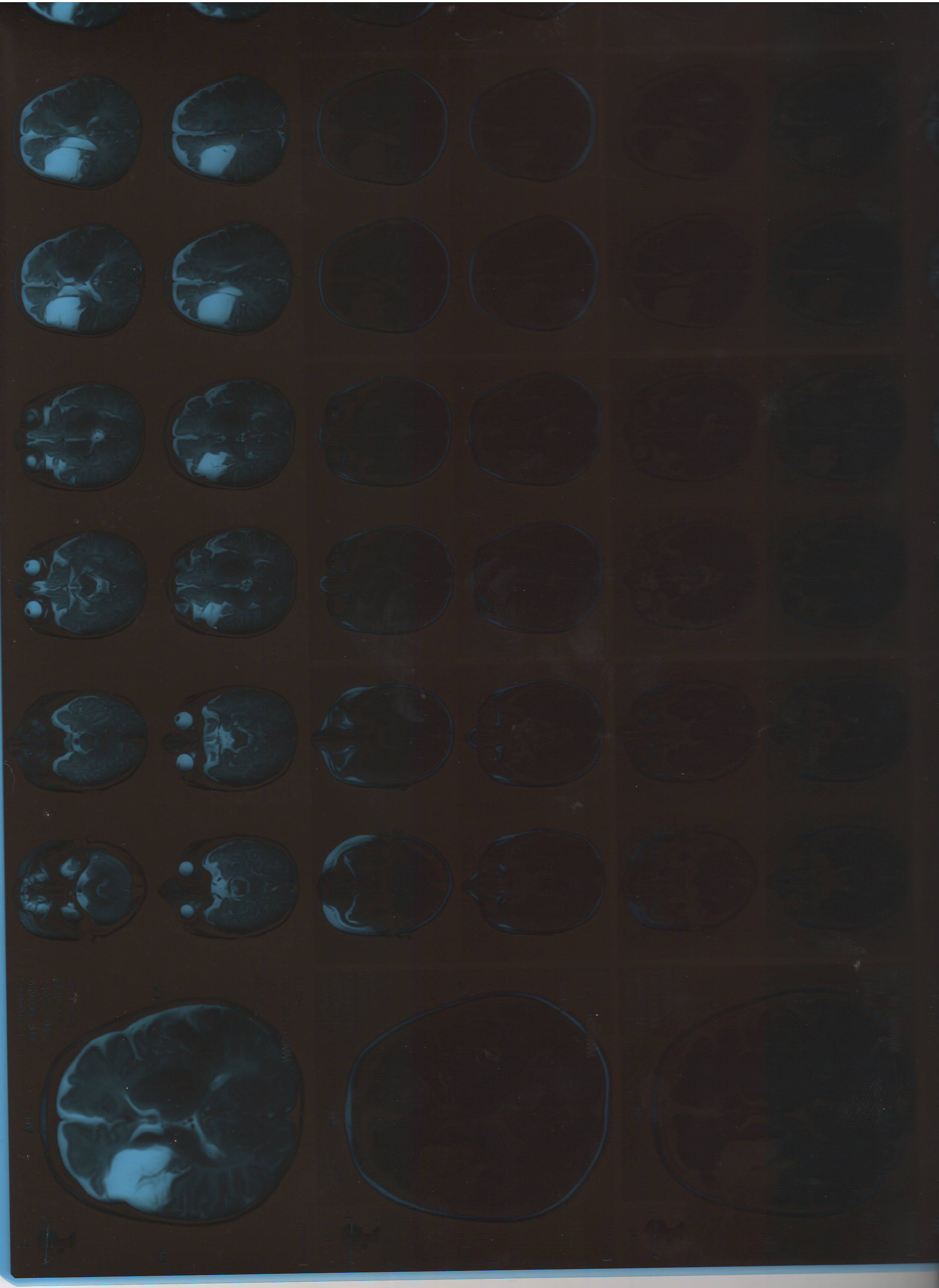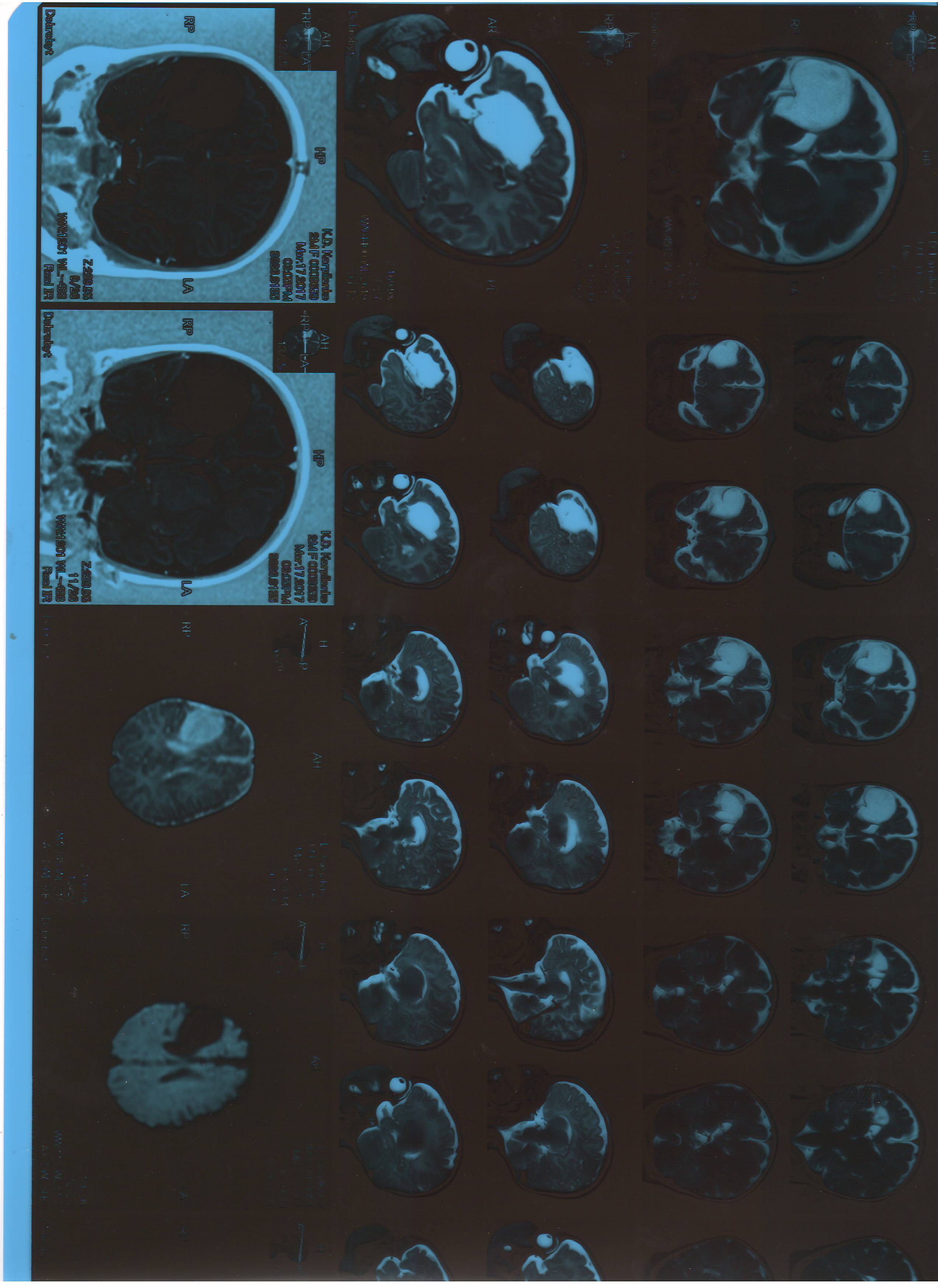 ЗАКЛЮЧЕНИЕ: порэнцефалическая киста правой лобной части размер 3,9*4,4*3,3 [/color]сантиметра. Средние структуры головного мозга на уровне межполушарной перепонки смещены вправо на 2,5мм