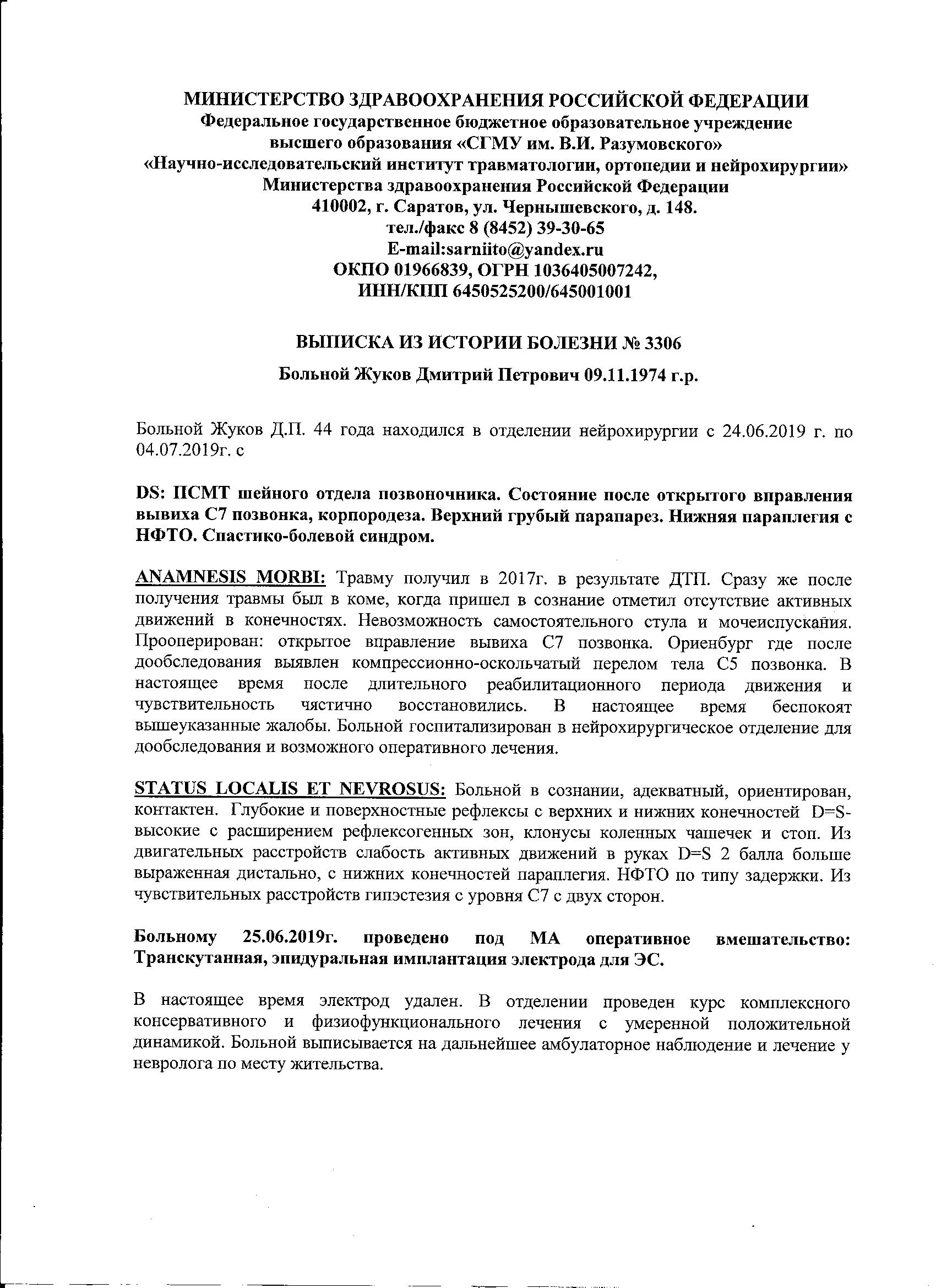 Судя по выписке, Вам предлагалось консервативное лечение с электростимуляционными методиками и только "при необходимости" - имплантация постоянного устройства. Поэтому показания к имплантации лучше обсудить с теми врачами, кто Вас лечил и ведет сейчас.
