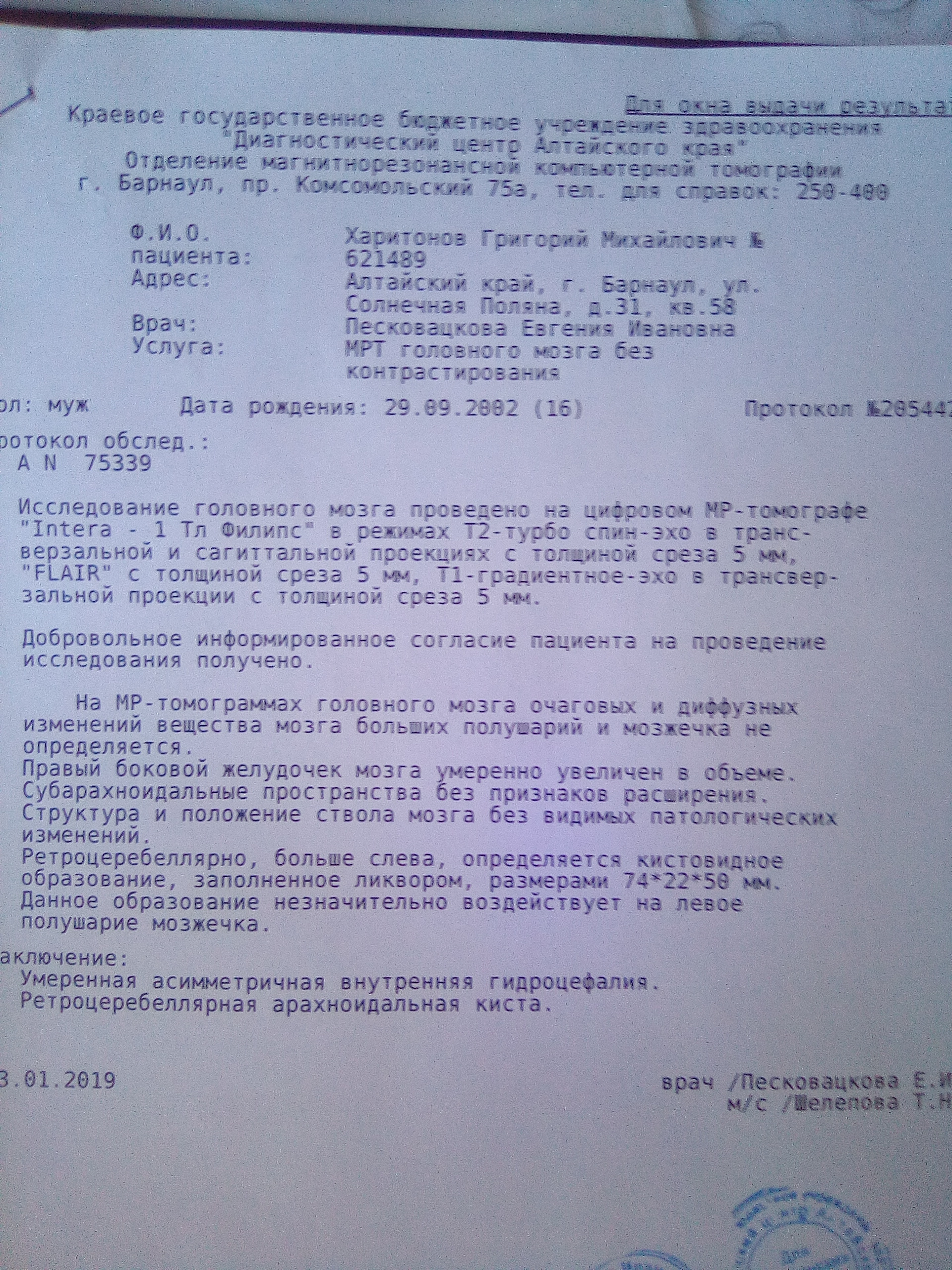 Добрый день, посмотрите, пожалуйста МРТ. Сын находился на стац лечении с мигренью ,сделали МРТ. Если возможно, дайте ответ- оперировать показано?
