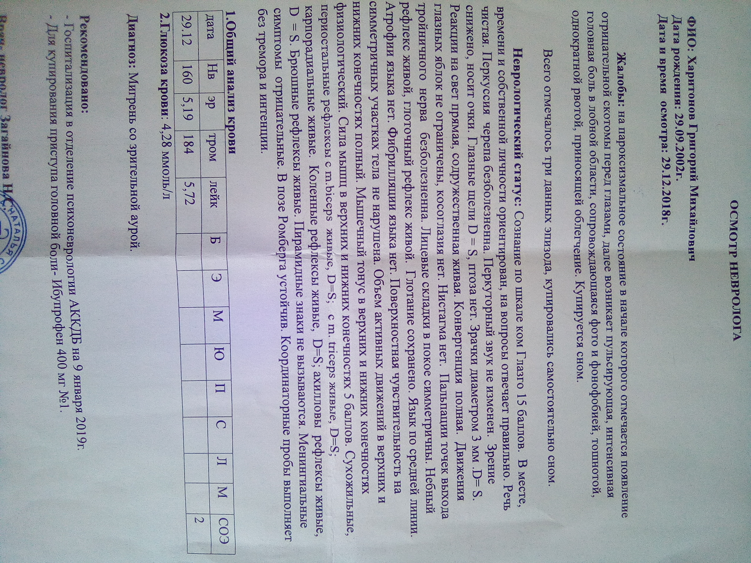 Осмотр невролога