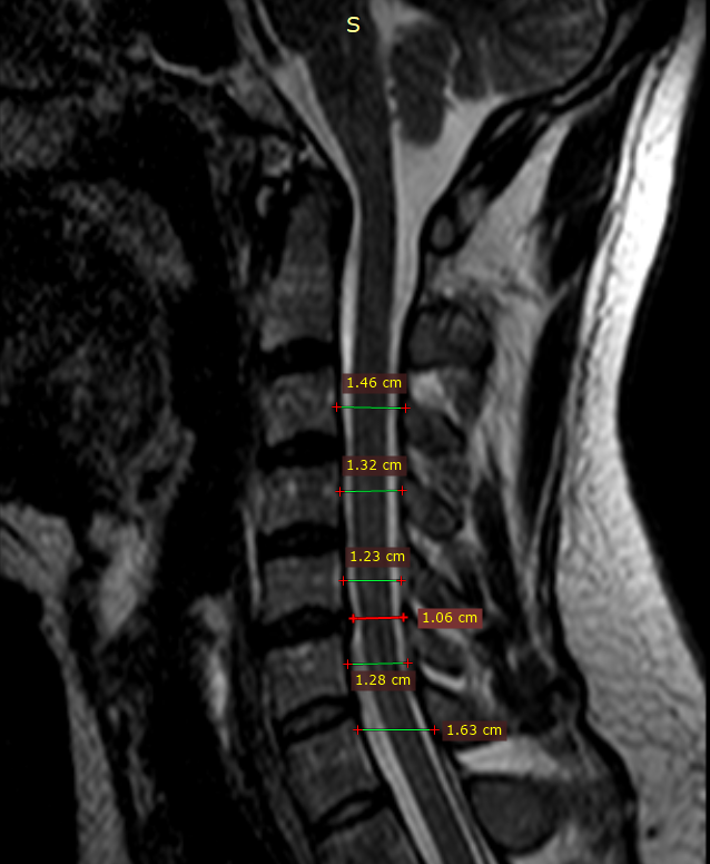 Признаков миелопатии не получено. Канал спинного мозга не расширен.